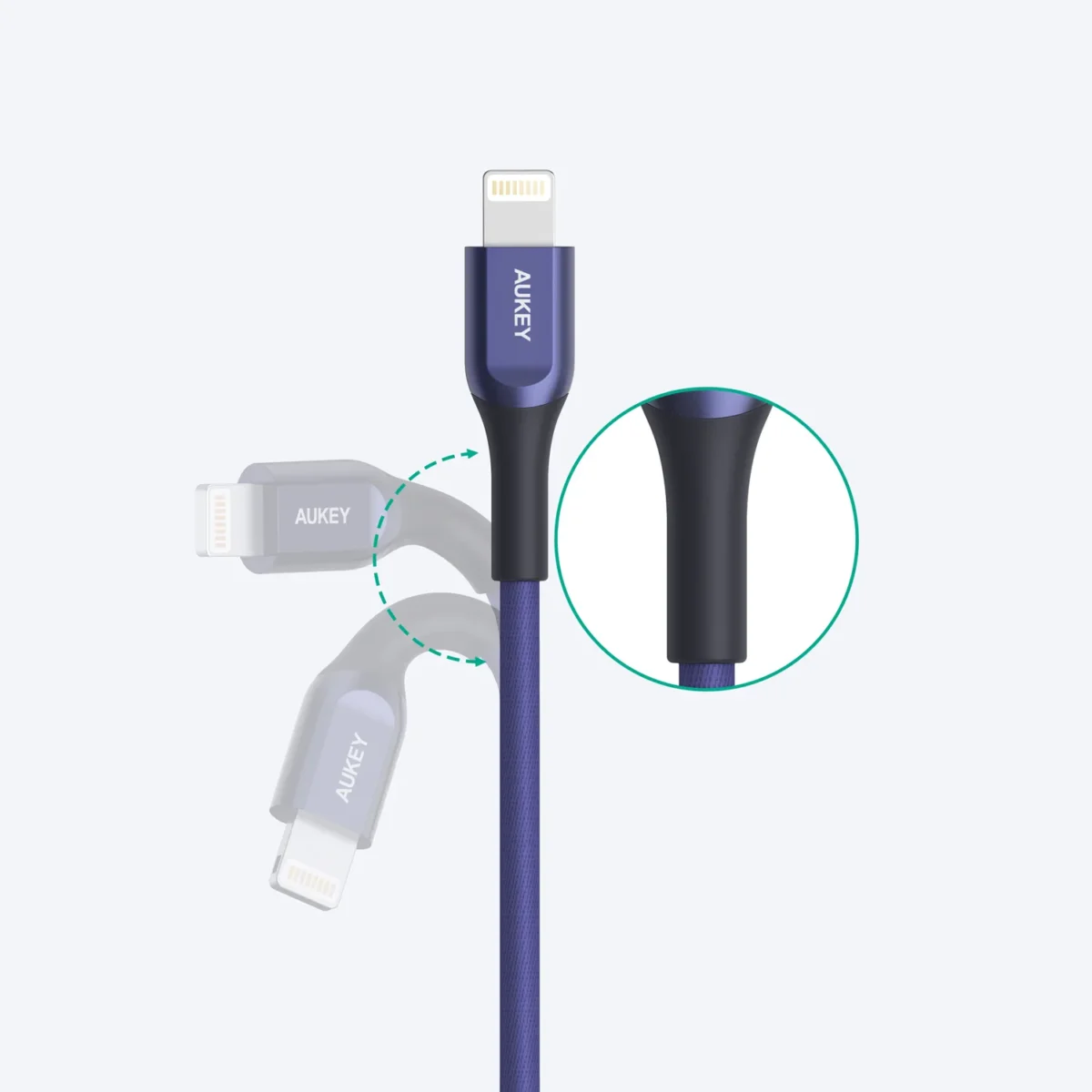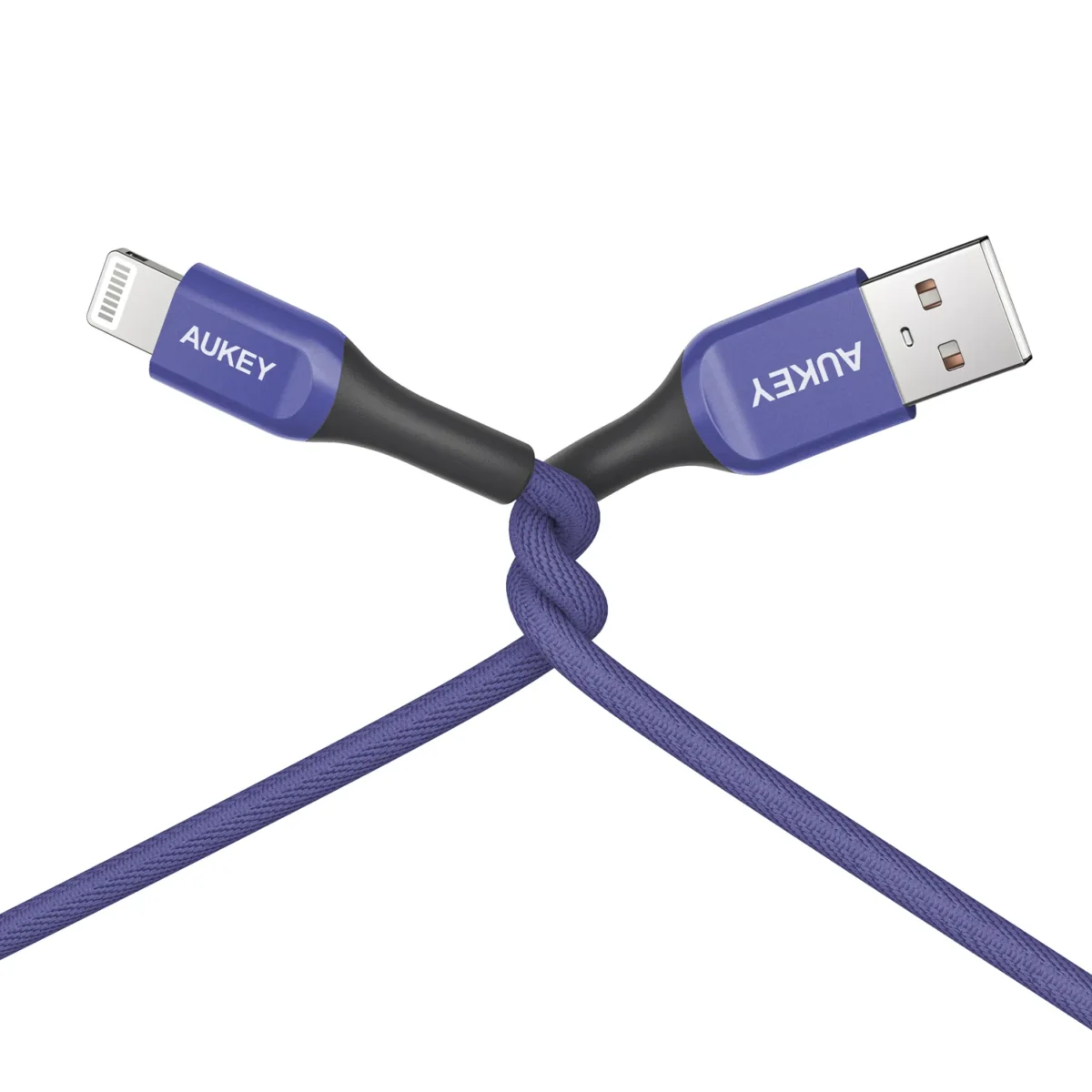 AUKEY CB-AKL1 MFI USB-A to Lightning Kevlar Cable (1.2m) delivers fast charging and data transfer with rugged durability and tangle-free design. Compatible with all Lightning devices.