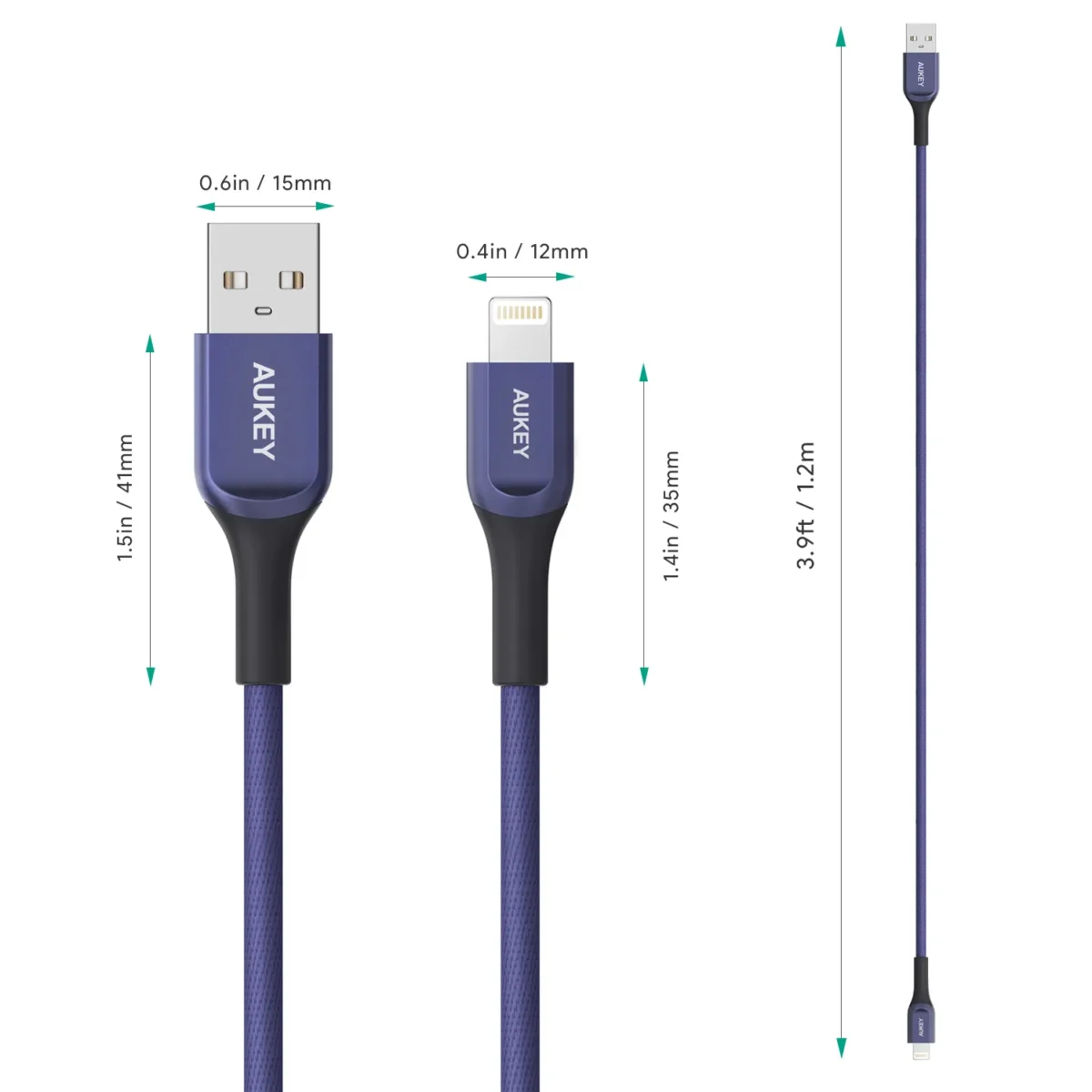 Aukey CB-AKL1 MFI USB A To Lightning Kevlar Cable – (1.2m / 3.9ft)