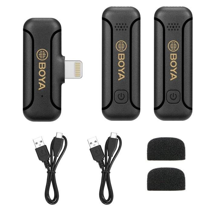 ميكروفون لاسلكي مزدوج 2.4 جيجاهرتز من Boya، موصل Lightning، BY-WM3T2-D2 - أسود