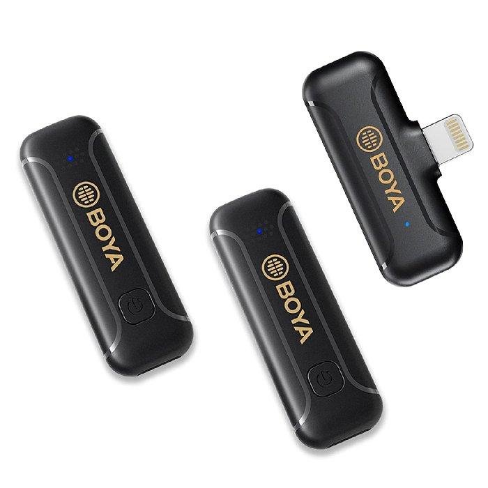 Information on Boya Dual 2.4GHZ Wireless Lavalier Microphone, Lightning Connector, BY-WM3T2-D2 – Black