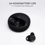 – The impressive 7-hour playtime can be extended to 24 hours using the stylish charging case, which provides 2 and a half extra charges on the go